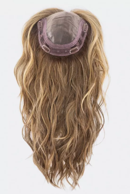Topper para la parte superior, hecho de cabello sintético resistente al calor, o fibra High-Heat, tiene un efecto memoria. Gracias a eso el cabello permanece perfecto. Se puede peinar y cambiar a su gusto, por ejemplo con un secador de pelo o plancha. Las fibras sintéticas son livianas y están disponibles en muchos colores. Fácil colocación con clips.